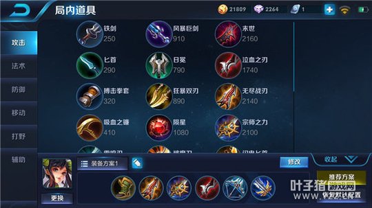 出装推荐:影忍之足+无尽战刃+宗师之力+泣血之刃+破甲弓+破军