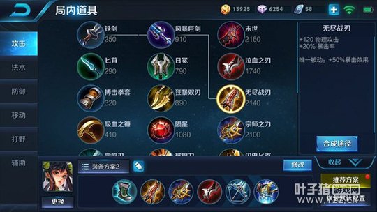 根据英雄的技能推荐以下出装:抵抗之靴+无尽战刃+宗师之力+泣血之刃+破甲弓+贤者的庇护