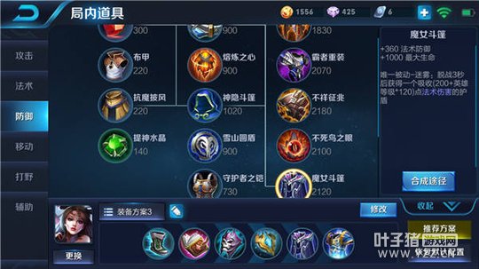 出装推荐:抵抗之靴、噬神之书、痛苦面具、极寒风暴、魔女斗篷、贤者的庇护。