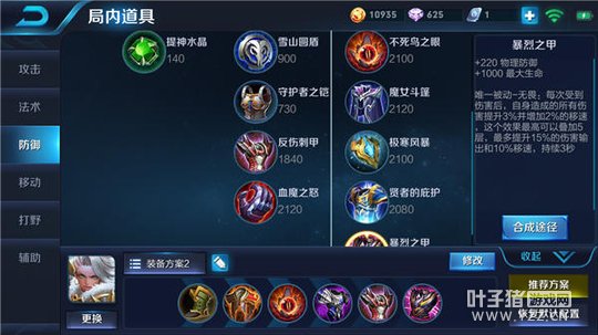 影忍之足→红莲斗篷→不死鸟之眼→霸者重装→反伤刺甲→暴烈之甲