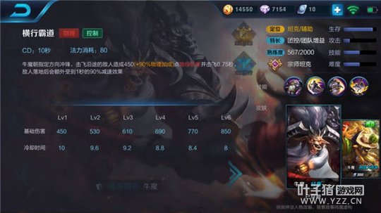 技巧:牛魔一技能的虚弱效果是最实用的,尽量使用技能命中敌方的主要输出单位,降低其输出伤害,让己方英雄获得相对安全的输出时间段。