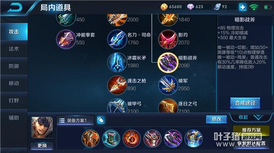 六神装推荐:红莲斗篷+抵抗之靴+不死鸟之眼+反伤刺甲+暗影战斧+贤者的庇护