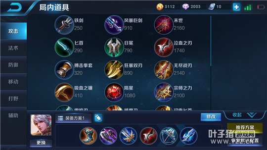 出装:急速战靴、暗影战斧、破军、泣血之刃、破甲弓、名刀·司命