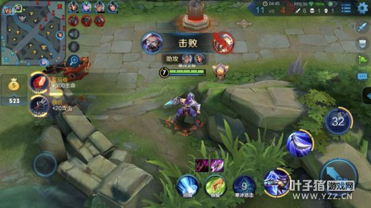 四级之后兰陵王可以开启GANK之旅,寻找机会开启大招接近敌方英雄,大招+二技能+大招+一技能,这套技能组合不仅可以触发二技能的晕眩效果,还可以在短时间内打出爆发伤害,如果敌方是没有任何防御装备的脆皮很容易就被兰陵王配合队友完成击杀。