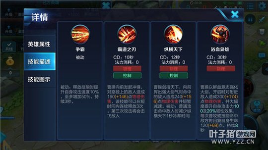 曹操是一名拥有高额伤害的战士英雄,并且其三技能赋予曹操强大的持续作战能力,这使曹操往往能够在战场中所向披靡。