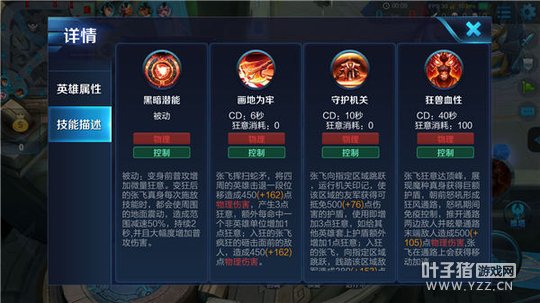解析:跳向指定区域,使该区域的友军获得抵免伤害的护盾,使用就会增加3点狂意,如给其他英雄套上护盾额外增加1点狂意;入狂后张飞向指定区域跳跃,造成物理伤害。这也是张飞迅速积攒狂意的方法,有了就给周围英雄或自己增加护盾,当然这也是一个位移技能,很多时候张飞就是依靠此技能的位移和护盾才能逃出生天,而护盾释放的时间也是能决定队友生死存亡的关键,很多时候护盾能抵御敌方一个关键技能,从而为友军争取到撤退的机会。入狂后则是输出加位移技能,所附带的减速效果可以很好的牵制敌军,追击敌人可以说是轻而易举。