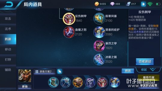 出装:抵抗之靴+破甲弓+不祥征兆+魔女斗篷+反伤刺甲+贤者的庇护