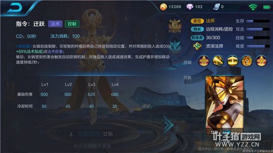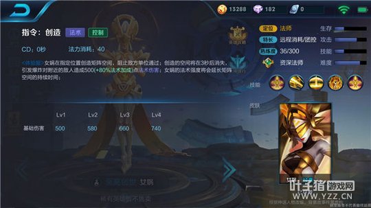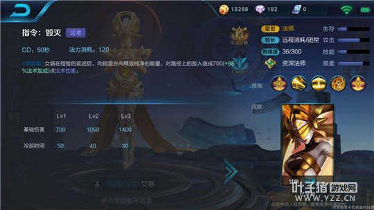 技能解析:女娲在短暂延迟后,会向指定方向释放能量,对路径上的敌人造成法术伤害。