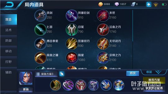 出装:影忍之足、暗影战斧、反伤刺甲、魔女斗篷、破军、贤者的庇护