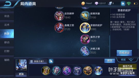 推荐理由:半肉半输出装备,不仅能够先手开团吸收伤害也可以利用技能打出不错的输出。整套装备中疾步之靴主要是为了增强钟馗的支援和游走能力,发挥钟馗的能力帮助队友更好的建立优势。痛苦面具和回响之杖是阵容中的法师输出装备,增强了钟馗的输出能力,这两件装备可以让钟馗的技能有不错的伤害,尤其是大招更是能打出高额的输出。在做出两件输出装备后可以选择堆积防御装备,这些装备能够让钟馗承担一个半前排的作用,在深入敌方阵型中时可以吸收一定的伤害。