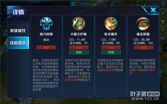刘禅的厉害之处在于被动,他的所有技能都可对敌方机关造成同等伤害,并掠夺敌方机关用于回复自身。如果是控制技能还将造成干扰效果,这就使得刘禅不畏惧敌方防御塔与水晶。只要有把握能击杀的敌人,基本上无兵线也能进行强杀,有效带动了己方节奏。