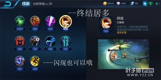 终结,芈月的爆发输出并不是很高,因此经常出现让敌人残血逃脱的尴尬情况。召唤师技能带终结可以避免此现象的发生。并且在实战中有配合3技能越塔后释放终结强杀残血对手然后1技能出塔的更多应用等。
