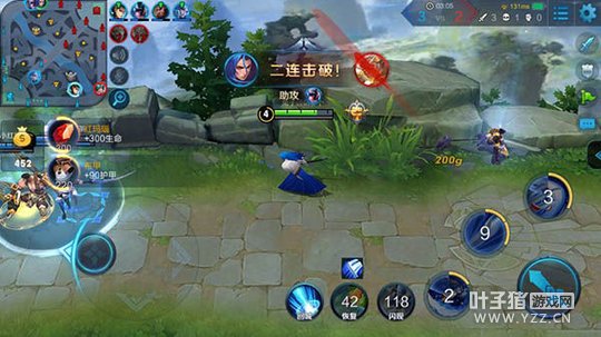 解析:位移技能,开启时往反方向跳跃,并对附近的敌人造成伤害;在命中敌人时可以减少一半的冷却时间,保证了他的灵活性。