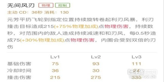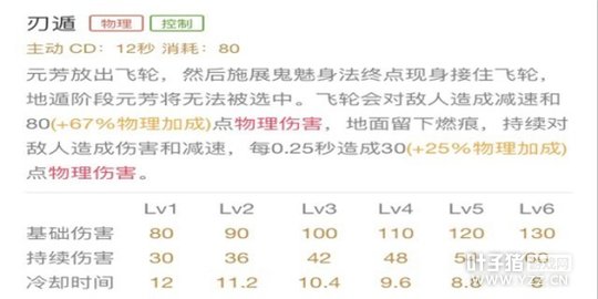 技能解析:二技能是元芳的一个主要位移,释放期间不可选中,飞轮会对敌人造成减速和物理伤害,并且在地面留下燃痕,持续对敌人造成伤害和减速,每0.25秒造成物理伤害,追击敌人和逃生非常好用,二技能的基础伤害虽然比大招高,但是相对大招的持续伤害和减速有所不如,伤害也没一技能那么高,所以选择副点二技能。