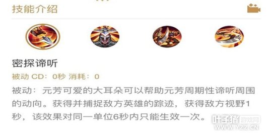技能解析:李元芳被动能够让其获得一定范围内的视野,但是对同个目标六秒内生效一次,此被动提高了李元芳抓人的成功率和防止被敌方草里偷袭,团战更是能够获得敌方视野来进行战术调整。