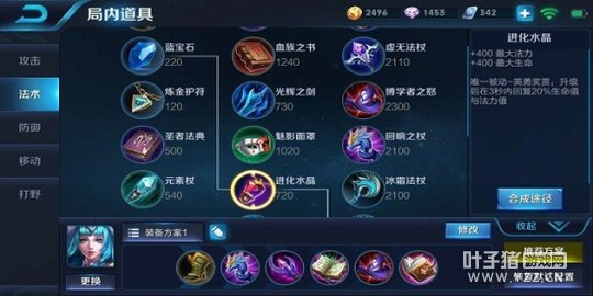 一种追求属性的出装顺序:鞋——进化水晶——回响之杖——血族之书——时之预言——博学者之怒——贤者之书——贤者的庇护/噬神之书/虚无法杖