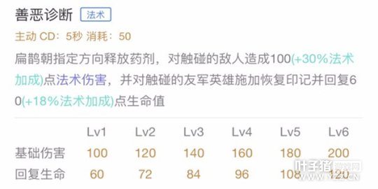 数值分析:对脆皮英雄来说不仅被叠上了标记后扁鹊大招伤害会提高,被动带来的持续伤害来说也很可观。但是由于伤害不如二技能高,因此推荐副加。