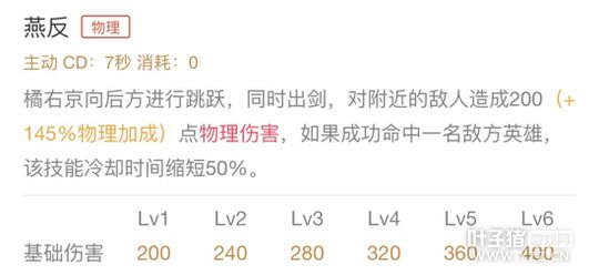 解析:橘右京向后方跳跃,对路径上的单位造成伤害,如果命中敌方英雄,将减少该技能50%的冷却时间。此技能是橘右京的位移技能,适合用来追击敌人或逃跑,使用时最好命中敌人,这样可以减少冷却,在短时间内方便使用多次一技能,打出连环的位移与伤害效果。