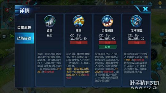 一技能——鹰眼:该技能可以获得大范围的视野,极大的保障了成吉思汗在对敌人进行压制时自身的安全,该技能被动也让他在对拼时占据优势。