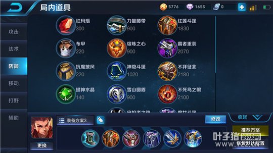 出装:抵抗之靴、红莲斗篷、反伤刺甲、魔女斗篷、破军、贤者的庇护