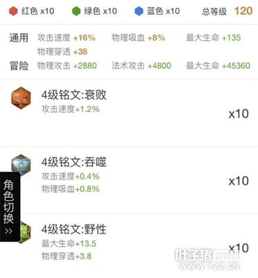 蓝色:吞噬*10 攻击速度+4% 物理吸血+8%