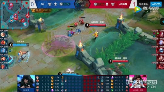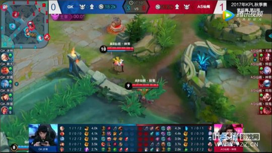 精彩发挥:比赛进行到6分20秒,AS仙阁主动入侵GK的野区,而GK立即进行防守。老夫子和张飞绕后切入战斗并留住了对手的吕布,AS仙阁原本打算撤退只好回头应战。而老夫子即使被打成残血依旧顶住对手的输出,不断的追击吕布将其强杀。