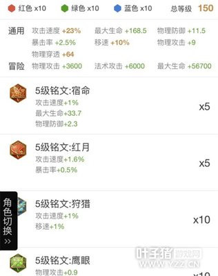 红色:宿命*5 红月*5 最大生命+168.5 物理防御+11.5