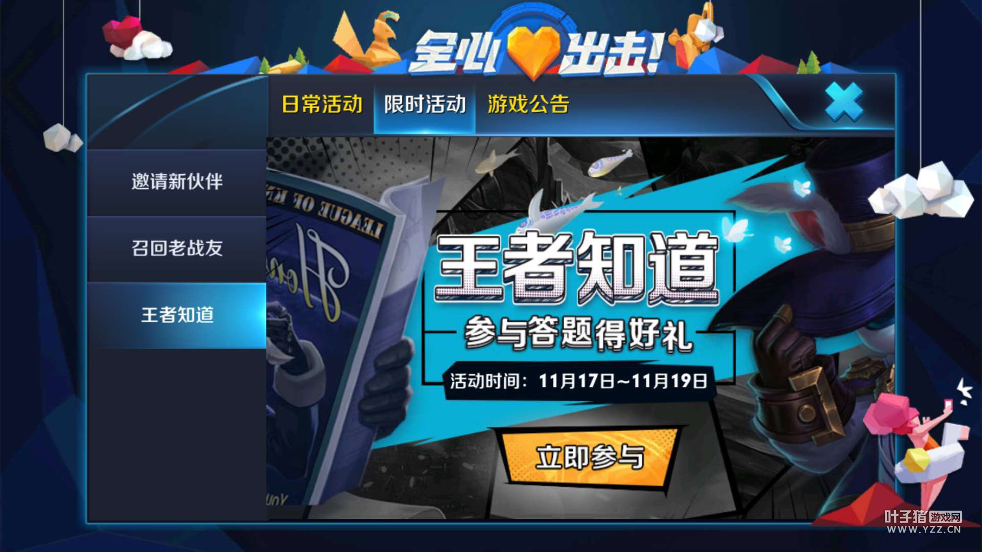 参与方式:从游戏弹窗进入或活动-限时活动-王者知道-立即参与