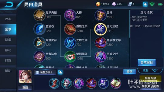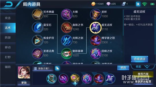 武则天作为中单法师,需要做的是打出控制和输出,而且自身三技能的CD较长,这也就说明武则天需要出一些减CD的装备,在对面没有太多突进型英雄和爆发性英雄时,顺风的武则天可以使用以上这套出装来保证她能打出更高的输出。