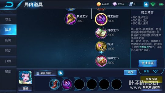 冷静之靴可以增加蔡文姬的移动速度,让蔡文姬的灵活性提升,并且增加的技能冷却缩减可以让蔡文姬拥有更加快速的技能回复时间,使蔡文姬的技能释放更频繁,时之预言可以让蔡文姬每次升级都可以为自身回复一定百分比的生命值和法力值,同时还可以根据蔡文姬的法强来增加自身的物理防御以及法术防御,时之预言本身还可以为蔡文姬增加一定量的生命值以及法力值。