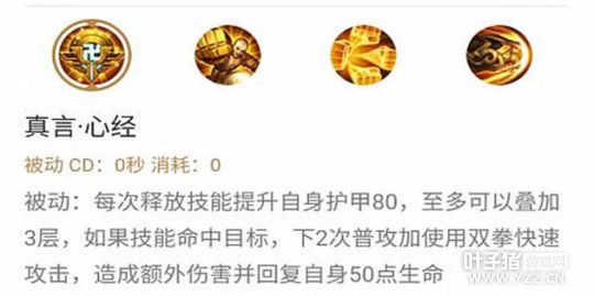 数值分析:被动技能触发后提升护甲且回血,达摩可以通过技能结合普攻快速将自己武装起来。