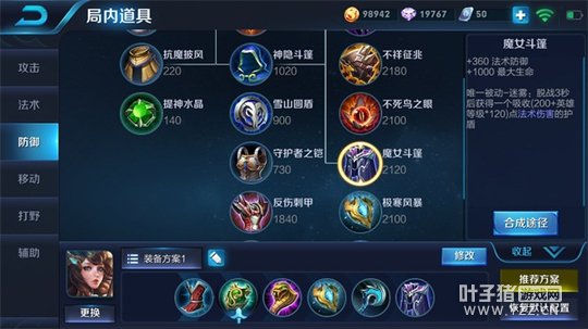 出装推荐:冷静之靴、救赎之翼、梦魇之牙、极寒风暴、冰霜法杖、魔女斗篷