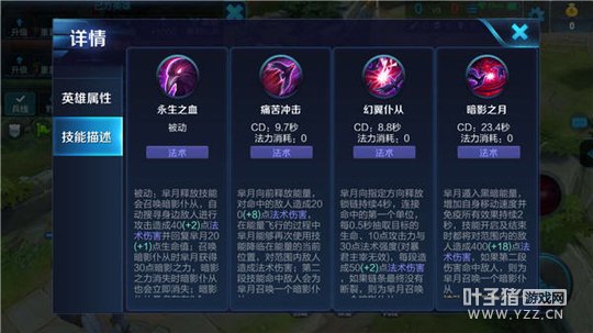 被动技能:芈月的各个技能都会触发被动,对周围的敌方目标造成持续的吸血和伤害。
