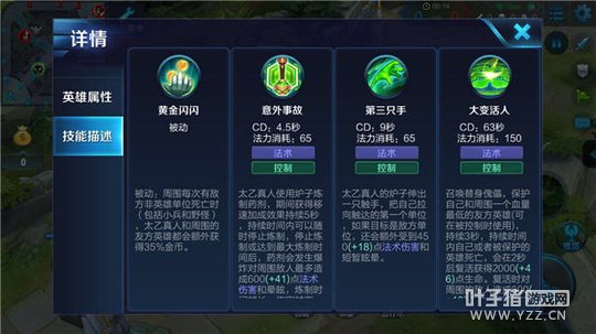 被动-黄金闪闪:太乙真人的周围每次有敌方非英雄单位死亡时,都会使自身及周围的友方英雄提供额外的金币。
