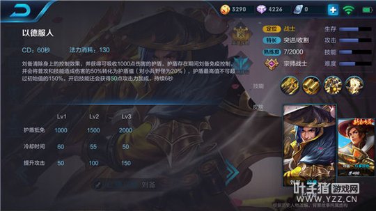 解析:保命神技,开启时可以清除控制效果,在被控制时可以用来保命;并且产生一个持续时间较长的护盾,在护盾存续期间免疫控制,并将造成的一定伤害转换为护盾,该效果的存在让刘备的持续作战能力极强,在装备成型后以一敌多都没有问题;最后可以增加一定的攻击力,这进一步提升了他的输出能力。