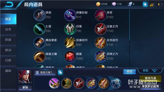 六神装:巡守利斧、影忍之足、泣血之刃、宗师之力、无尽战刃、破甲弓