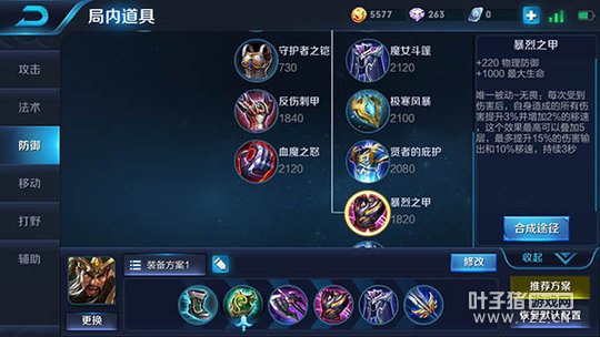 分析:这两件装备为关羽提供了巨额的物理防御、法术防御和生命值,极大的提升了关羽的生存能力,并且暴烈之甲还提供了伤害加成和移速加成,对关羽的意义非比寻常。