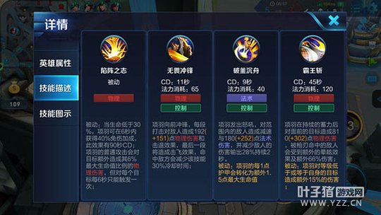 不祥征兆:高额的物理防御和生命值,让项羽的坦度得到进一步提升,再加上被动效果,敌人只要在团战中攻击项羽,就会减少自身的攻速和移速,不用项羽主动出击,就可以限制敌人的移动和输出,团战收益非常高。