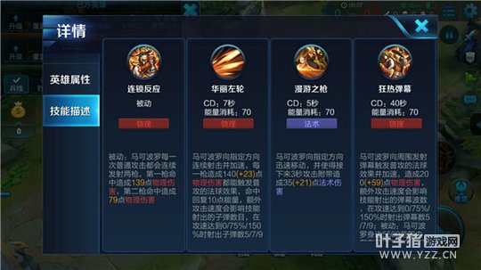 马可波罗向指定方向射出子弹,每一颗子弹都可以触发普攻的法球效果。释放的子弹对小兵,野怪和英雄都可以造成伤害,攻击敌人时要注意前面的障碍。释放时可以移动自身调整位置,保证伤害。如果所有子弹命中,对敌人有着极高的伤害。