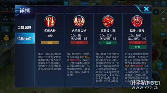 被动-炙炼火种:哪吒每次用枪造成的伤害和使用乾坤圈时,都会对敌人造成灼烧伤害,并限制目标的生命回复。