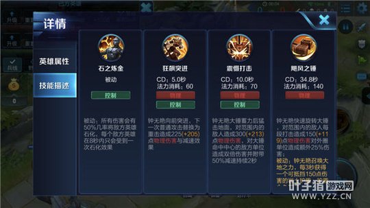 被动-石之炼金:钟无艳的所有伤害都有一定几率将对方石化,每个英雄在一定时间内只会被石化一次。