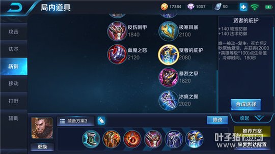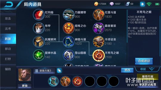 抵抗之靴、红莲斗篷、不死眼之眼、反伤刺甲、魔女斗篷、贤者的庇护