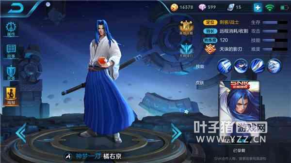 橘右京定位为刺客,既可以远程消耗敌人血量,又可以近距离完成收割任务。橘右京的爆发伤害和生存能力都比较出众,自身机动性一般,但拥有一个强控技能且自带续航能力。四级前的橘右京相比其他英雄略显强势,可配合队友反野,但橘右京的突进能力差,召唤师可通过携带闪现技能进行弥补。