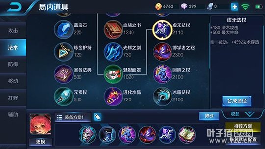 分析:博学者之怒的被动极大的增强了安琪拉的法术攻击,安琪拉自身的法术攻击越高,提升的法术攻击就越多,而虚无法杖则是为安琪拉提供了非常高的法术穿透,敌人即使出防御装也很难抵挡安琪拉的输出伤害。