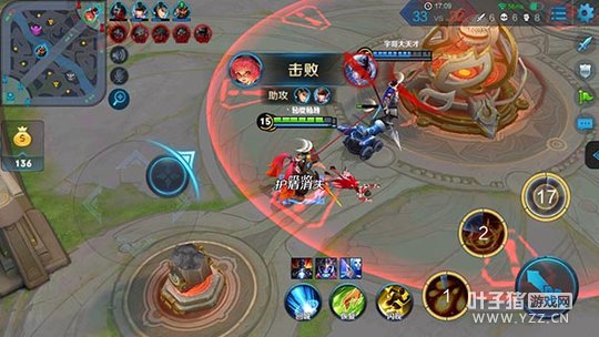 安琪拉打劣势局的团战就没有优势局那么轻松了。在劣势局中,安琪拉万万不能站在队伍的前排,因为稍不注意就有可能被敌人直接秒杀,应站在队伍的中间位置,既要保证自己的安全,也要保证自己的技能能够命中到敌人,边打边退,采取风筝流打法,敌进我退,敌退我进,一边撤退,一边释放技能消耗敌人。当有敌人走位出现失误,立即释放二技能将其控制,然后集火将他秒杀。“伤其五指不如断其一指”,失去人数优势的敌人会瞬间从大优对局变成大劣对局,然后在敌方少人的情况下,强势开团,拿下团战的胜利。