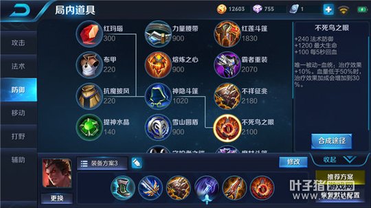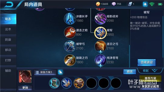 后期六神装:抵抗之靴、破军、不祥征兆、纯净苍穹、无尽战刃、不死鸟之眼