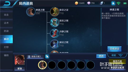 吕布作为一名强力的战士,主要玩法路线便是选择走上路去对线敌军的射手和辅助,而且前期敌军射手多带有红buff,可以使吕布的移动速度大幅度减少,容易遭到敌军的击杀,但若选择出门装备神速之靴,可以大大提高吕布的移动速度,为吕布逃脱敌军追击提供条件。且选择装备神速之靴也可使吕布的一技能命中率大大提升,提高对敌军的击杀能力。