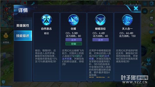解析:庄周幻化出蝴蝶飞向前方,对路径上的敌人造成伤害,并降低他们的移动速度,持续一段时间。该技能的攻击范围广,输出伤害高,还具备穿透效果,是庄周的远程清线技能。