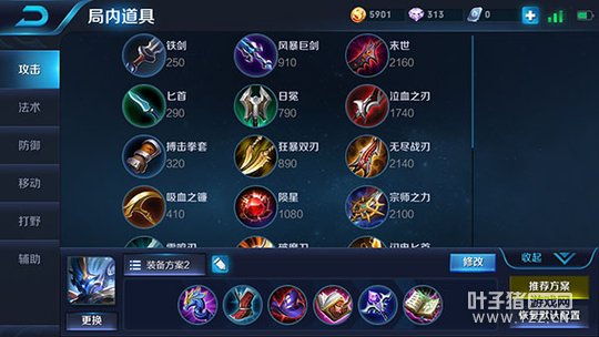虚无法杖:用来应对敌方所出的防御装,如果敌方的法术防御装备不是很多,可以将虚无法杖换成痛苦面具。