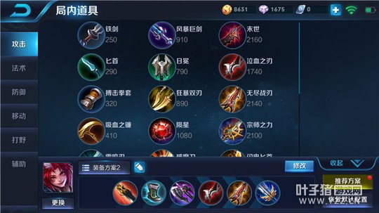 出装:追击刀锋、抵抗之靴、暗影战斧、泣血之刃、无尽战刃、破军
